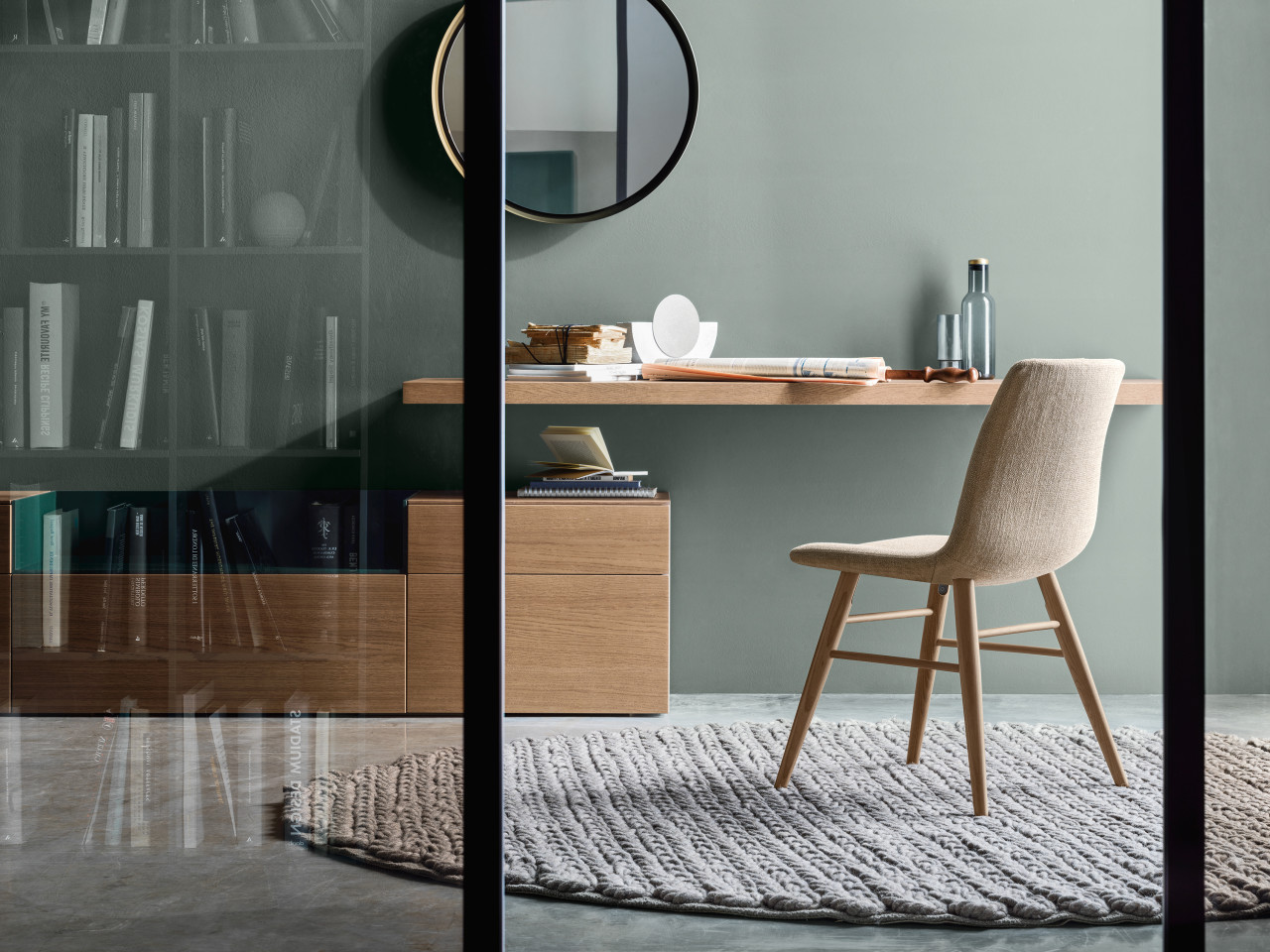 Natt ist ein ganz dem nordischen Stil entsprechender Stuhl, mit einem Gestell aus Holz, das in allen Farben lackiert werden kann, und einer Sitzfläche mit abziehbarem Bezug aus Stoff oder Textilleder.
